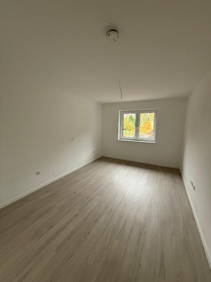 Die Wohnräume werden mit glatt verputzten, weiß gestrichenen Wänden ausgestattet und schaffen dadurch ein helles und modernes Wohnbild. Im Wohn- und Schlafzimmer wird ein Vinylboden verlegt, der pflegeleicht ist und zugleich eine angenehme Wohnatmosphäre vermittelt. Das Badezimmer wird gefliest und fügt sich funktional und zeitlos in das Gesamtbild der Wohnung ein.